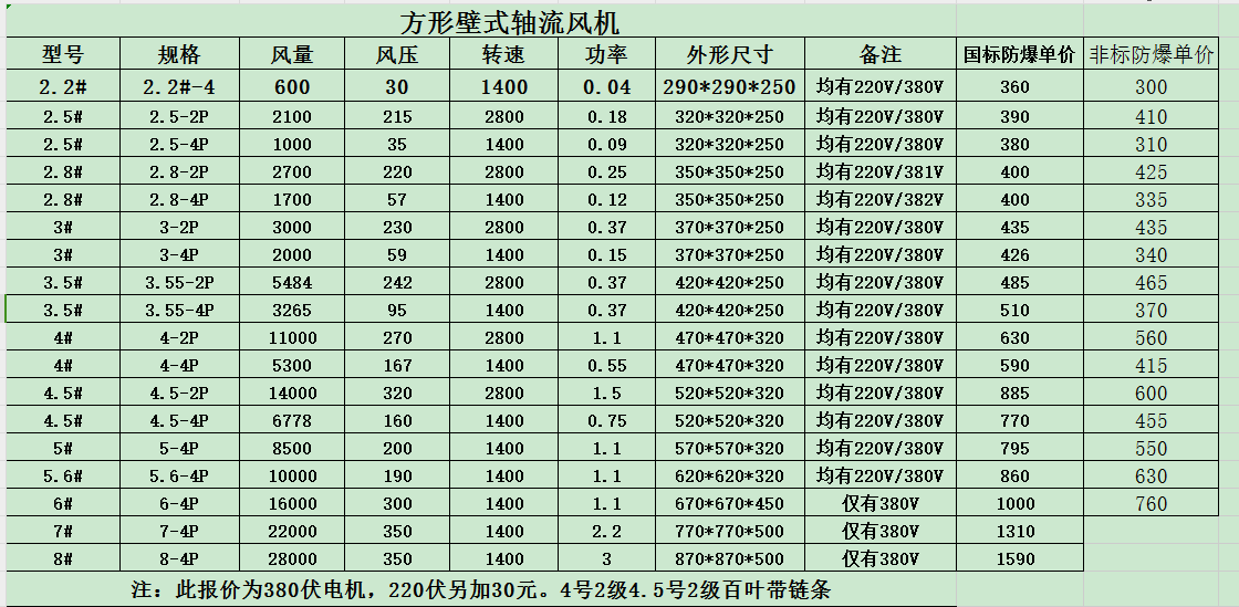 方型壁式軸流風(fēng)機(jī)